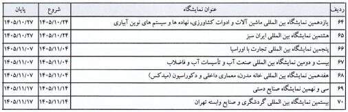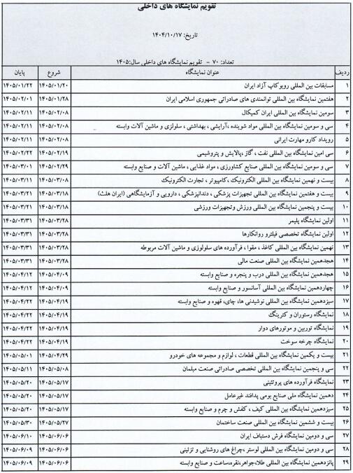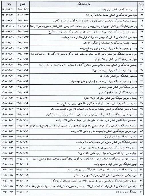 تقویم نمایشگاههای بین المللی جمهوری اسلامی ایران در سال 1405